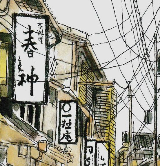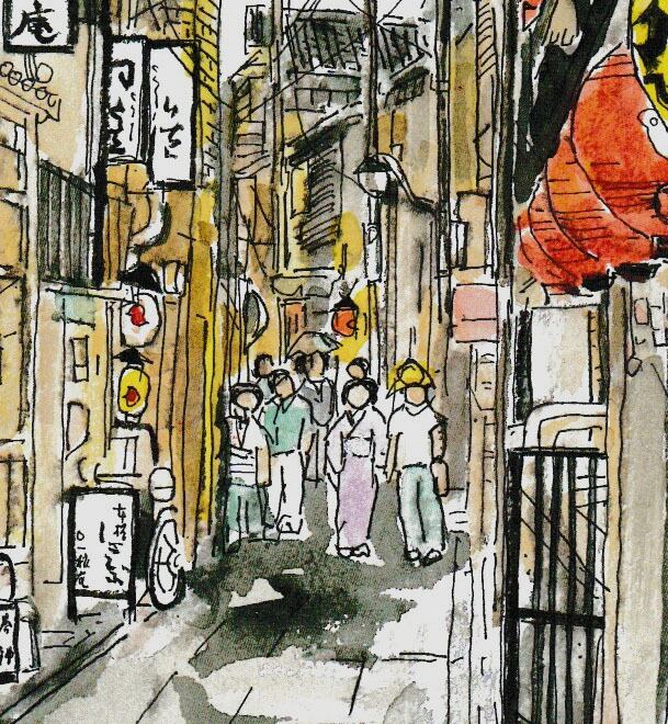 原画はペンで線描き後、透明水彩絵具で着色しています。